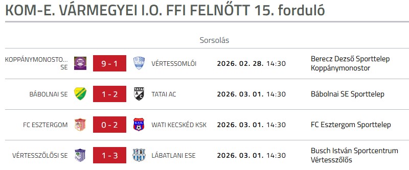 A hétvégi forduló eredményei: