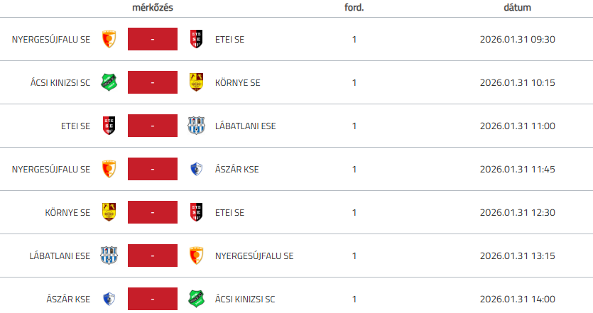 A Komárom-Esztergom Vármegyei Igazgatóság által rendezett futsal tornákon négy döntőt játszanak a hétvégén. A lány U14-es korosztály döntőjét a Bábolna Város Sportcsarnokban, a lány U16-os korosztály az Ácsi Városi Sportcsarnokban küzd meg, a férfi U19-es korosztály a Dadi Református Tornacsarnokban mérkőzik meg a győzelemért, a férfi Felnőtt bajnokság döntőjét pedig a kisbéri Zsivótszky Gyula Sportcsarnokban rendezik meg.