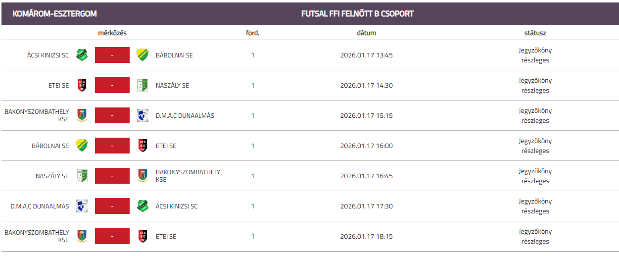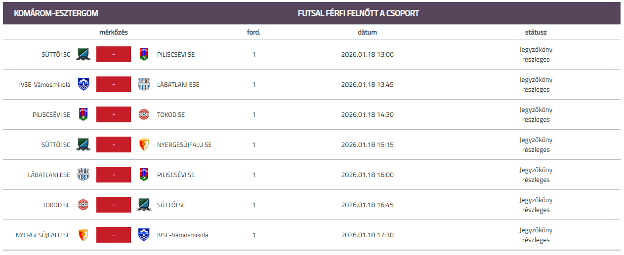 A hétvégi forduló mérkőzései: